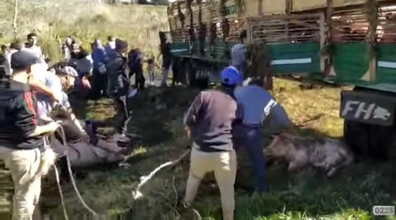 [Video] Robaron y faenaron 120 cerdos tras el vuelco de un camión en la ruta 2