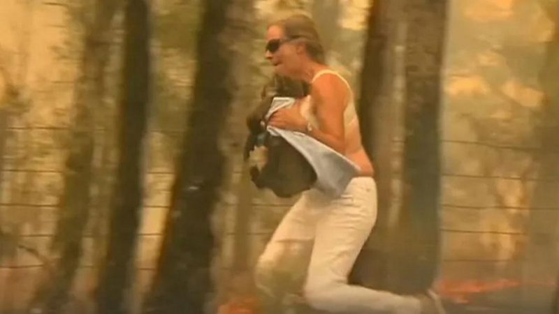 Video viral: el momento en que una mujer arriesga su vida para salvar a un koala de un incendio