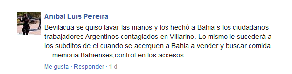 “Lo único que se conoció sobre el pensamiento o cualquier cosa que tuviera que decir el intendente al respecto, fue mediante un audio viralizado, aunque solo dirigido en principio a la gente de Acción Por Villarino, su partido. Se trató de una inconclusa explicación del porqué de los contagios, con dosis de arenga y discurso político de campaña. No más que eso, cuando en realidad todos los habitantes de Villarino esperaban de manera oficial su palabra”, señala el portal Info Villarino.