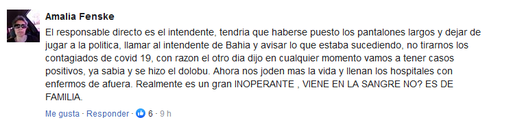 Es decir que el malestar no es sólo de la gente de Bahía Blanca, que cree que Bevilacqua puso en peligro la salud de todas las poblaciones cercanas al no brindar un lugar a los trabajadores del parque eólico para que no circularan.