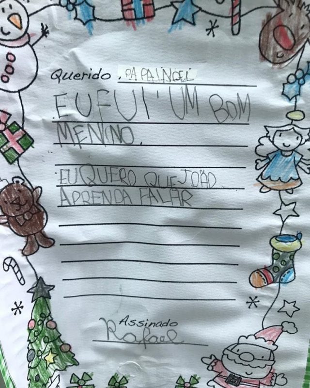 Carina, madre del pequeño Rafael, de tan solo 8 años, publicó en la famosa plataforma digital una imagen que muestra la carta que su hijo con autismo le escribió al ícono de Navidad, donde se observa que el chico quería con todo su corazón que su mejor amigo João pudiese comunicarse.