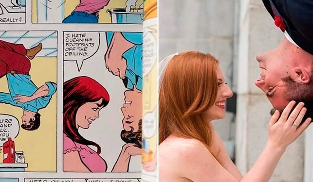 En las imágenes se puede ver como recrearon las viñetas en donde se narra el matrimonio de Peter Parker con Mary Jane Watson.