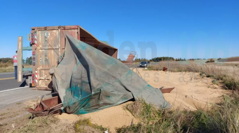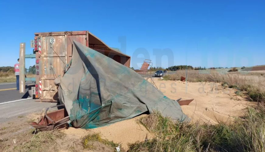 Un camión que viajaba desde Coronel Pringles a Bahía Blanca perdió parte de su carga al volcar su acoplado cuando transitaba en el kilometro 648 de la ruta 51.