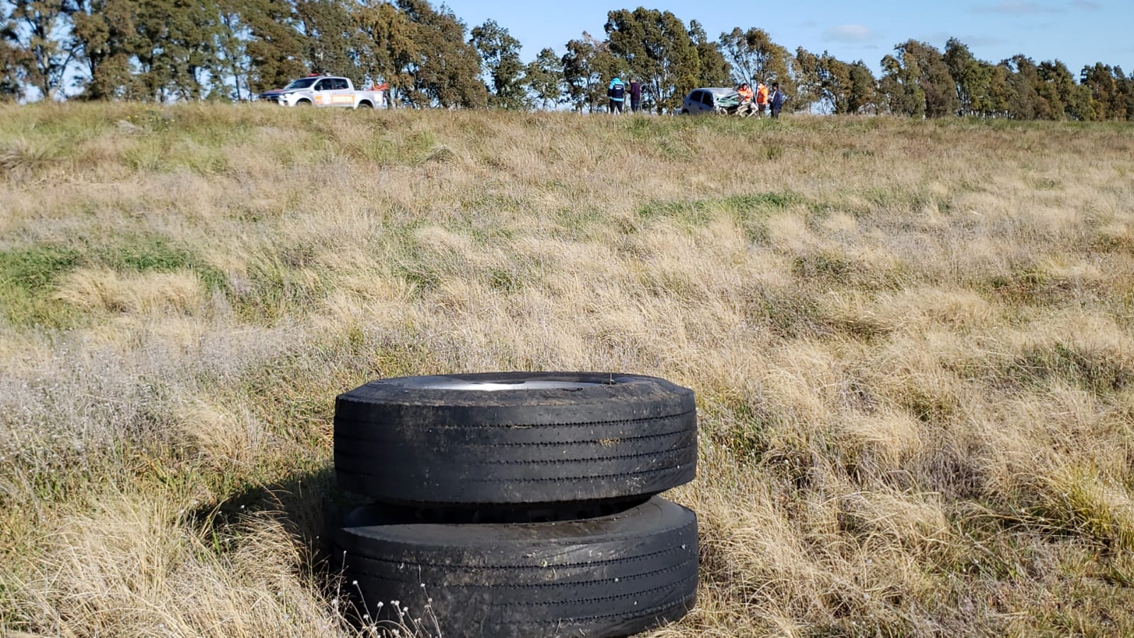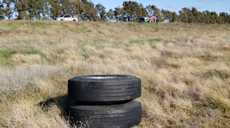 Un camión que transportaba arcilla rompió el eje trasero y sus cubiertas duales impactaron contra un Volkswagen Gol en el kilómetro 754 de la ruta 51.