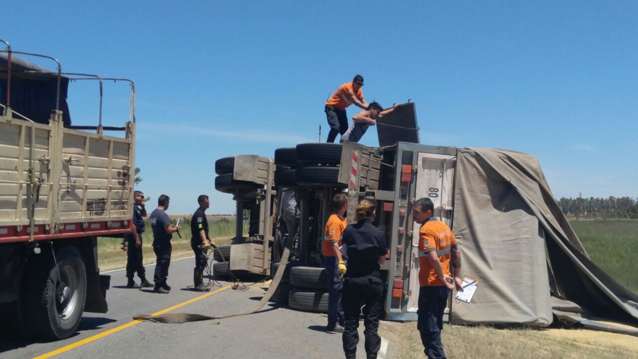 El vuelco de un acoplado se produjo este lunes en el kilómetro 719 de la ruta 51.
