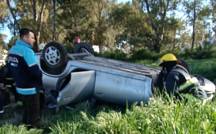 El vuelco de un auto se produjo este martes, alrededor de las 9, en la ruta 3, a la altura de la empresa Agromax.
