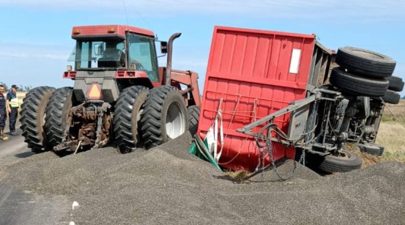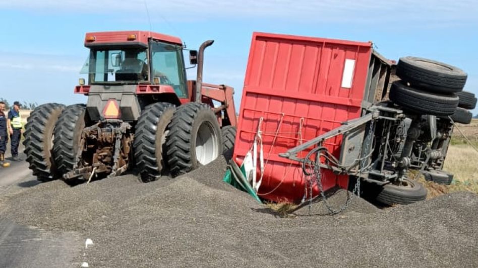 Volcó un camión cargado de girasol en la ruta 205