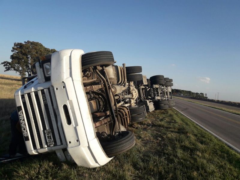 Un camión volcó este miércoles en el kilómetro 29 de la ruta 33.