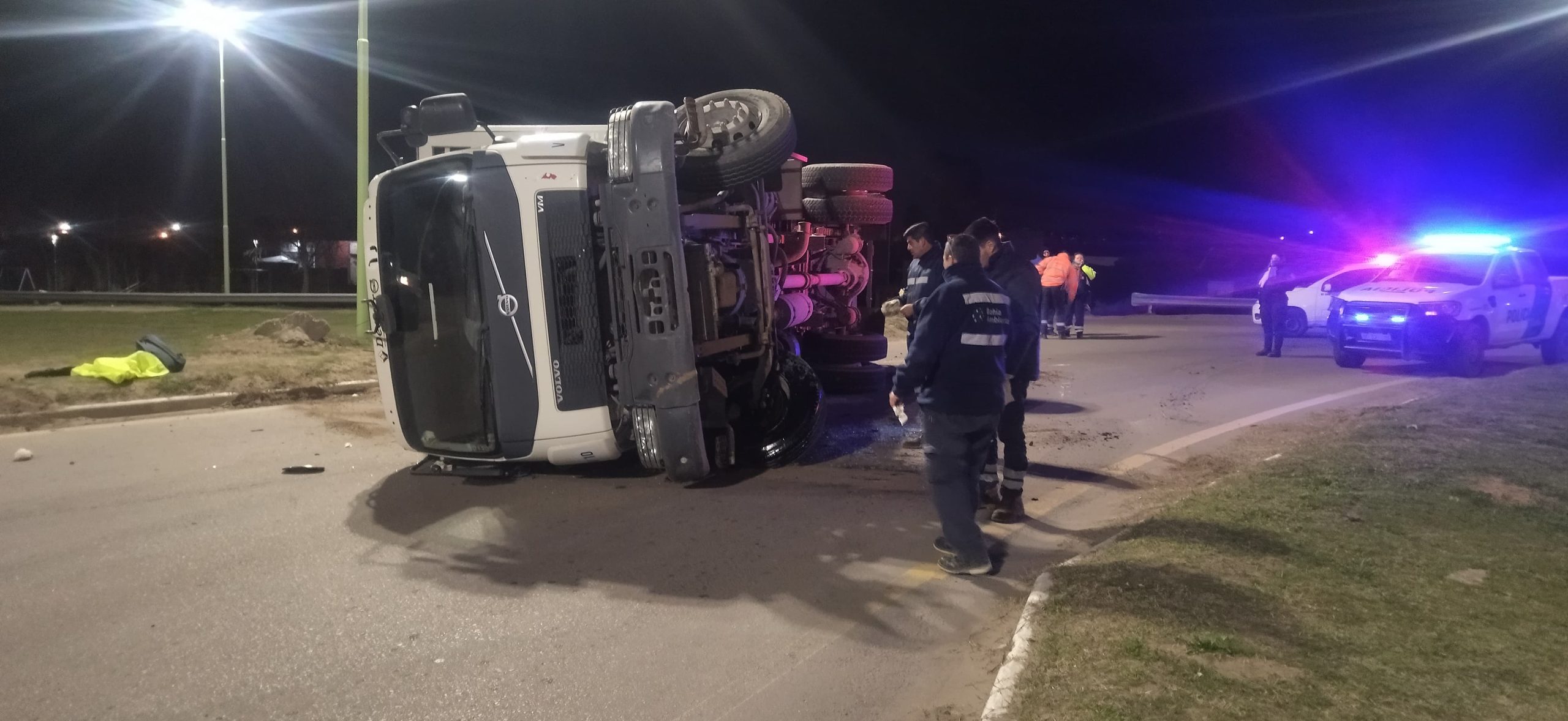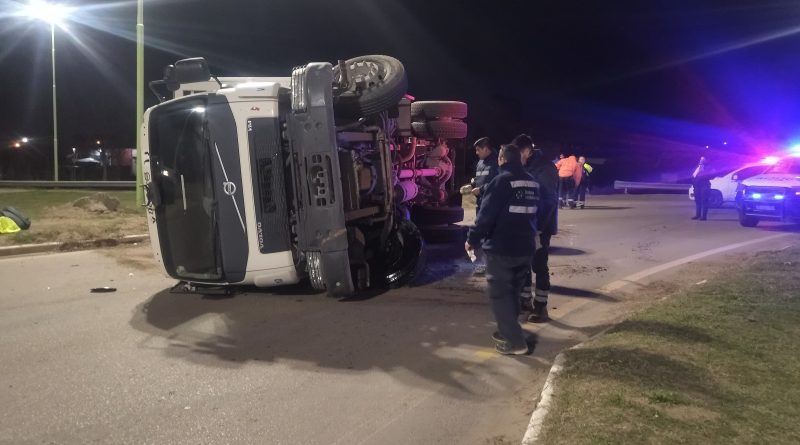 Un camión de Sapem Ambiental volcó esta madrugada en la rotonda de Láinez y Juan Manuel de Rosas.