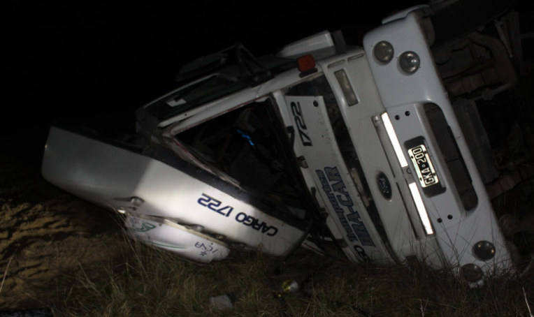 Un camión volcó anoche sobre la ruta 51, a unos 30 kilómetros de Coronel Pringles, con dirección a Olavarría.
