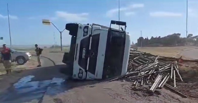 Un camión volcó esta mañana en la ruta 51, a la altura de la rotonda de Frapal.