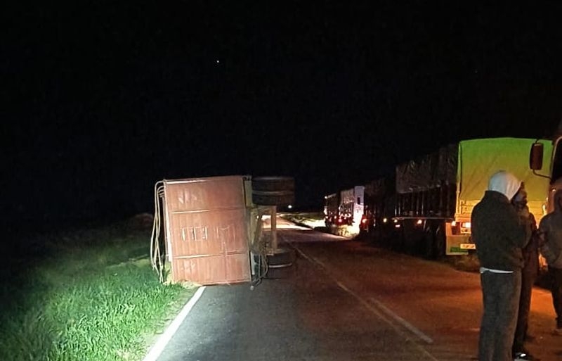 Un camión que transportaba cereal volcó ayer en el kilómetro 41 de la ruta 33.