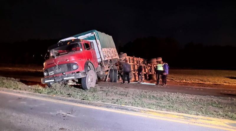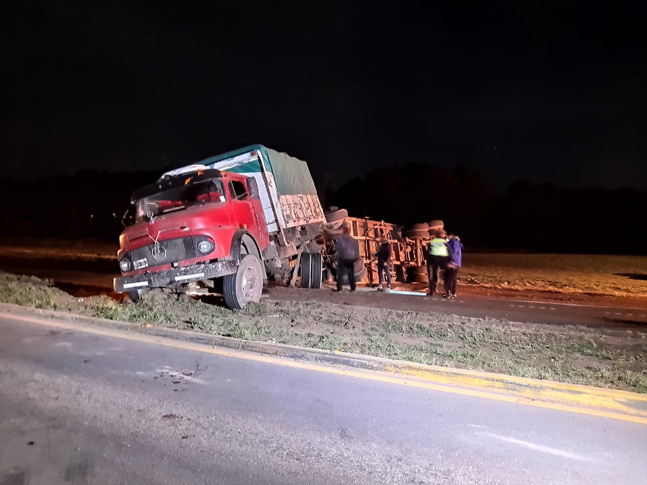 El vuelco del acoplado de un camión en el sector de la peligrosa dársena que desemboca en la rotonda de ruta 33 y el acceso a la ruta provincial 76 se produjo este madrugada, informaron fuentes oficiales.
