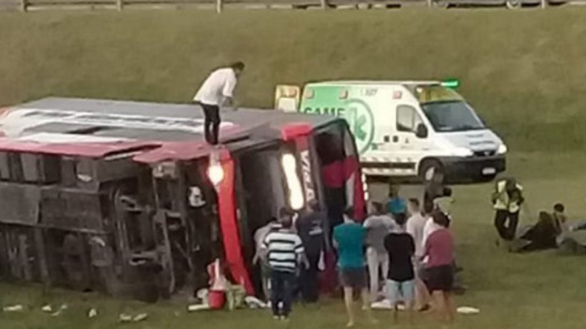 El hecho ocurrió aproximadamente a las 6 y las autoridades investigan las causas. El micro había salido de Mar del Plata hacia Buenos Aires y terminó volcado en el cantero central.