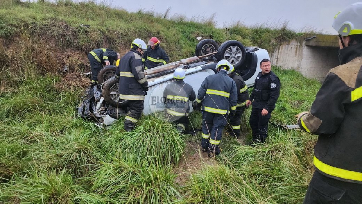 Se detalló que por el agua en la cinta asfáltica, perdieron el control del rodado, rompieron el guardarail del puente y cayeron al canal.