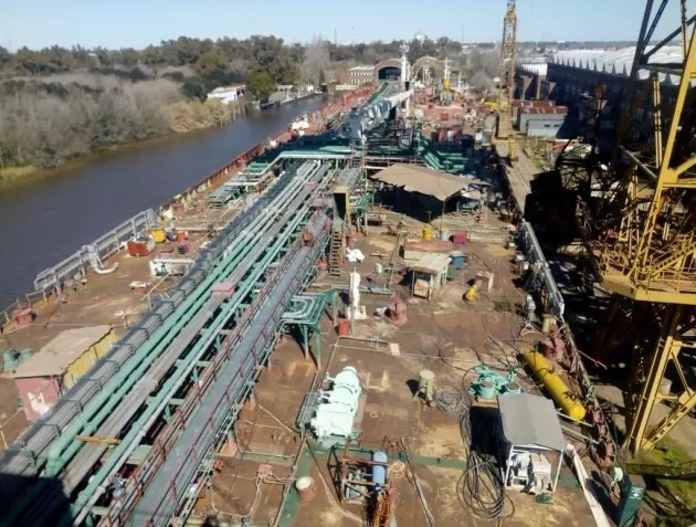 En esa acta constaba un compromiso de parte de las autoridades provinciales para gestionar los insumos para continuar con la producción. Hoy, en las gradas de Astillero hay nada menos que un gigantesco buque petrolero -el Juana Azurduy- con el 82 por ciento de su casco finalizado y plazos de entrega a su comprador, la empresa venezolana PDVSA.
