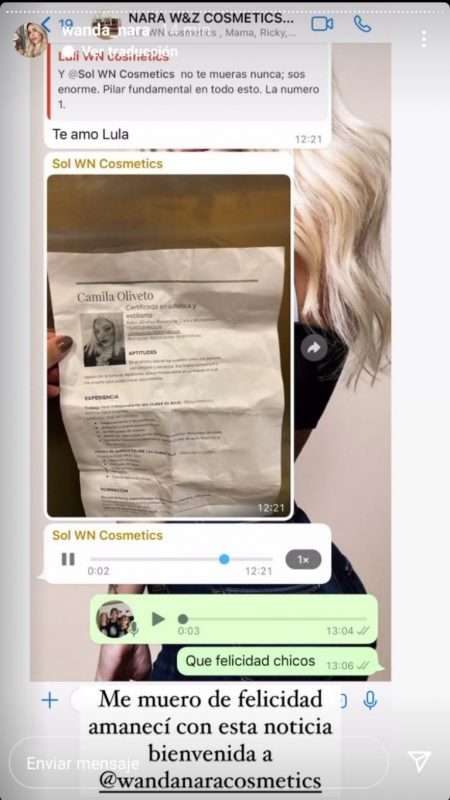 Camila, la joven que consiguió el trabajo, expresó su alegría en sus redes sociales: “Gracias, Wanda, te amo”.
