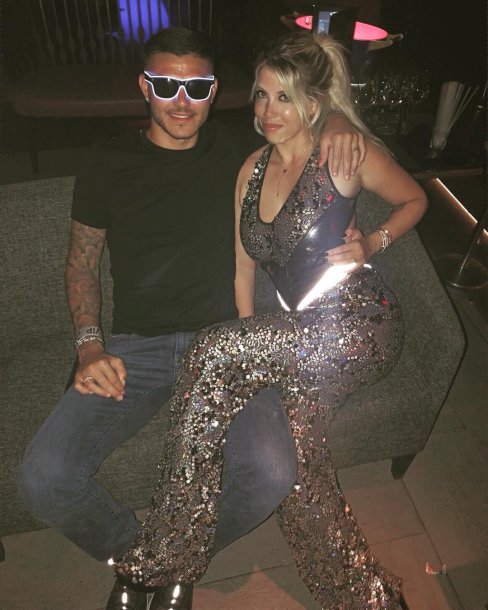 La pareja compartió fotos y videos de su excéntrica noche, donde la mediática, apelando a los años 70, optó por un llamativo look que se llevó todas las miradas: un body trasnparente, que crubría con brillos dorados, y un profundo escote que dejaba a la vista sus curvas. Icardi, mucho más sobrio, se vistió con un jean y una remera básica negra de cuello redondo.