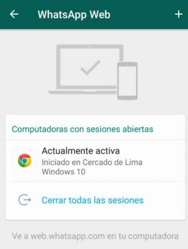 En caso no se reconozca estos dispositivos, se debe presionar en el botón “Cerrar todas las sesiones” y así estarás libre de que alguien lea tus conversaciones en WhatsApp.