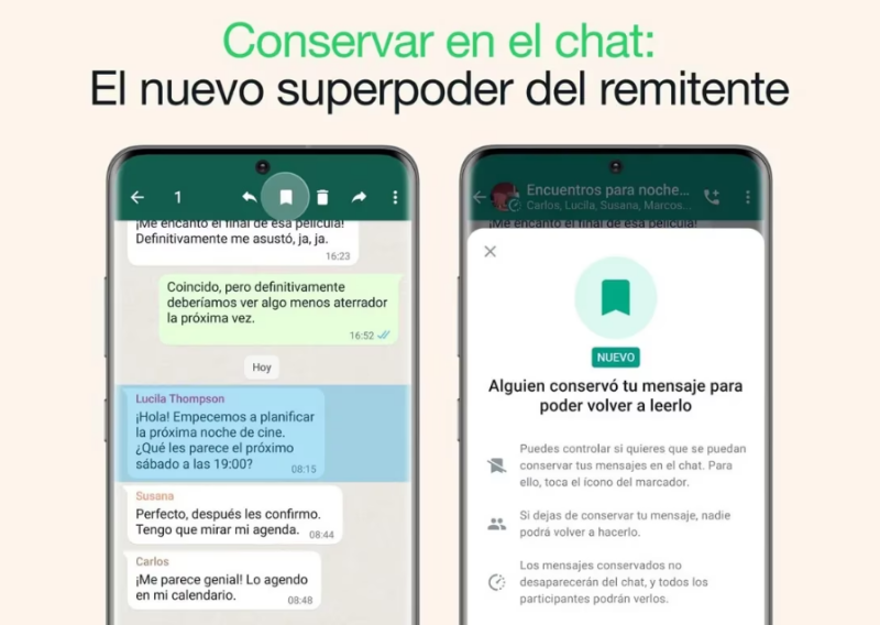 Según ha explicado la ‘app’ de Meta en un comunicado en su blog, la función ‘Conservar en el chat’ permite guardar mensajes de las conversaciones para que estén siempre disponibles. Estos mensajes almacenados mostrarán un icono de marcador en la conversación del chat, y se podrá acceder a ellos posteriormente a través de la carpeta de ‘Mensajes conservados’, donde los mensajes se encontrarán organizados por chat.