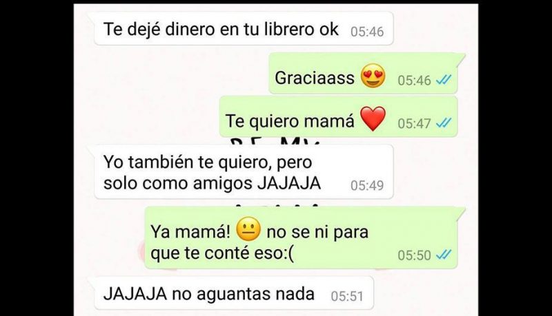 ¿Qué contestó la madre de familia? “Yo también te quiero, pero solo como amigos”, fue el mensaje que recibió el joven, quien quedó en shock al leer el texto que le envió su mamá a través de WhatsApp.