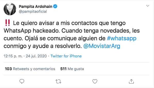 Horas atrás, Pampita publicó en Twitter un mensaje para alertar a sus seguidores de que su cuenta de WhatsApp había sido hackeada. Como en el último tiempo, este hecho le ocurrió en varias oportunidades y con distinas redes sociales, Yanina Latorre puso en duda su veracidad y planteo una picante teoría.