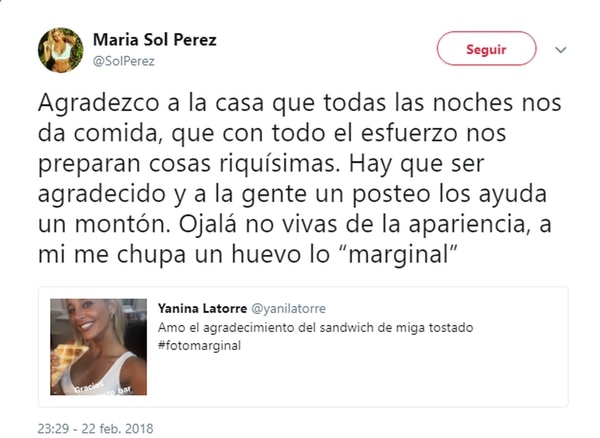 ¡Pensar que todo arrancó por un tostado! Para Sol Pérez, un posteo de agradecimiento a un bar; para Yanina Latorre, una de sus tantas fotos marginales. Y así fue creciendo la polémica en las redes entre ellas hasta que la (ex) Chica del clima -la modelo abandonará TyC Sports, donde ganó fama dando el pronóstico- y la panelista se dijeron de todo, pero cara a cara.